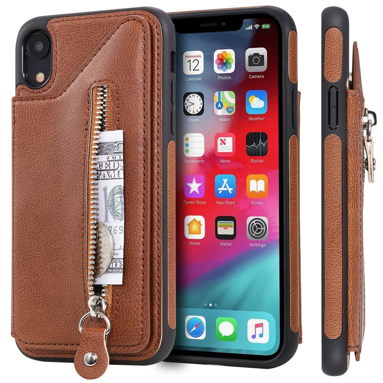 Funda Protectora para iPhone Xr Doble Hebilla Cremallera a Prueba de Golpes (Marrón)