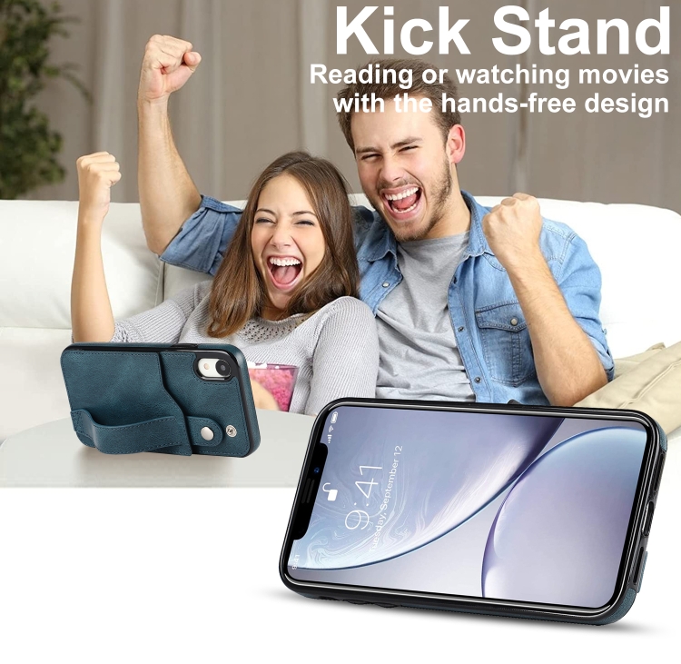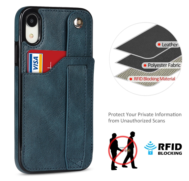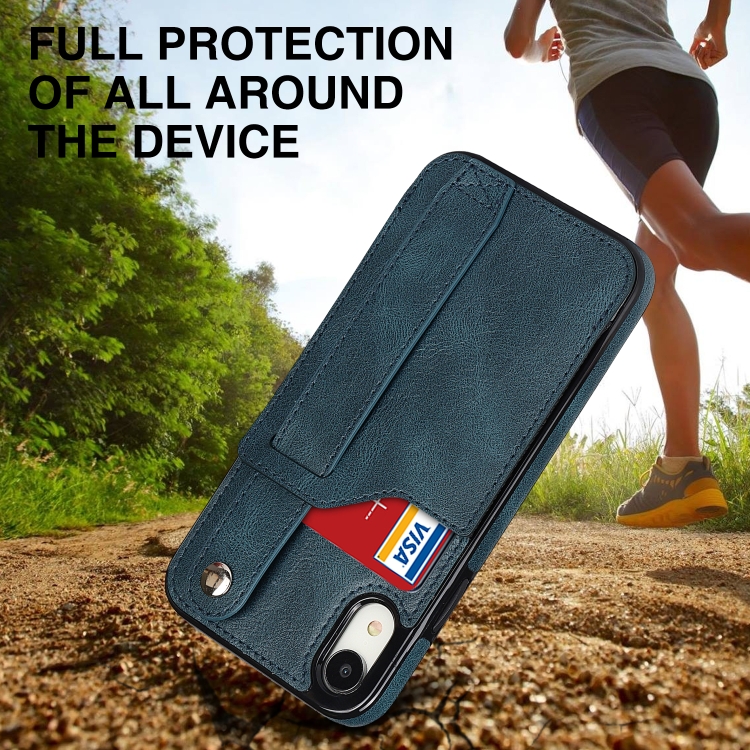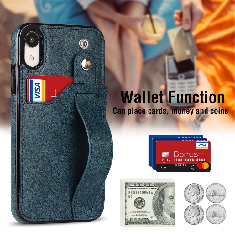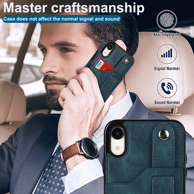 Funda para iPhone Xr Crazy Horse Texture Cuero TPU + PU a Prueba de Golpes con Ranura para Tarjeta y Correa para la Muñeca (Azul Zafiro)