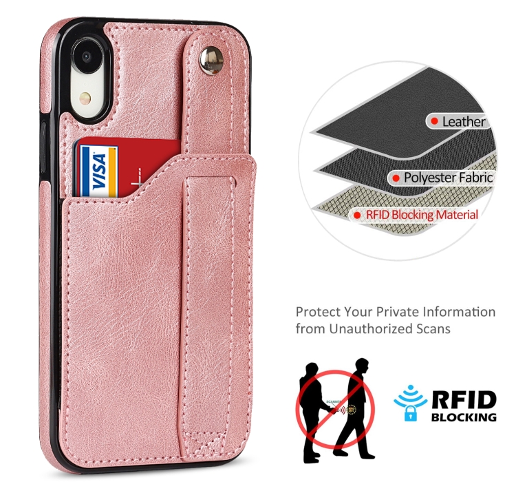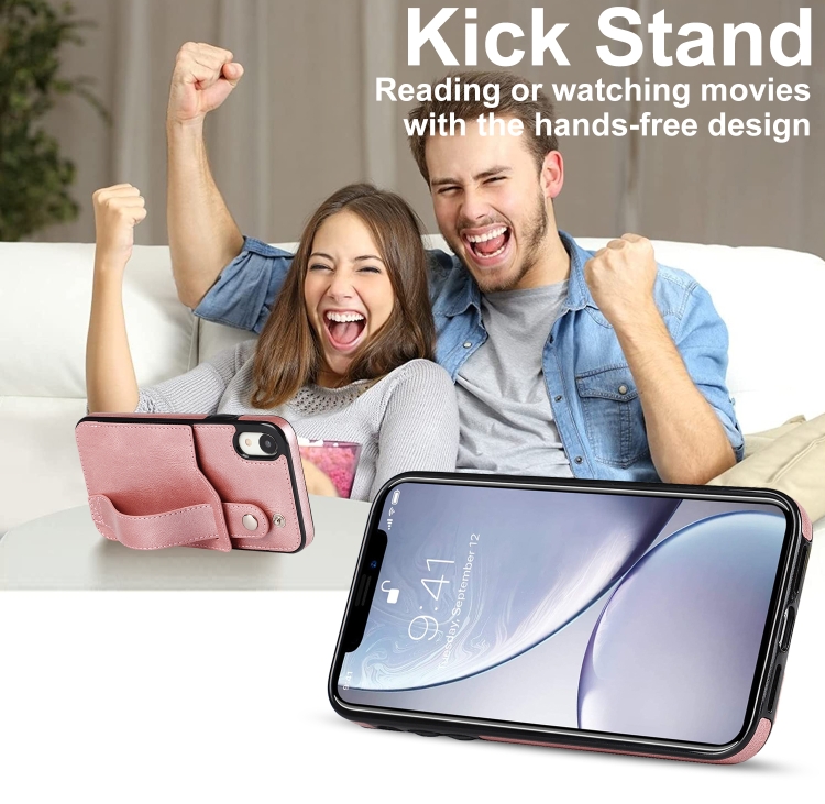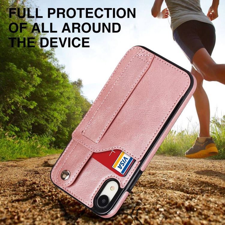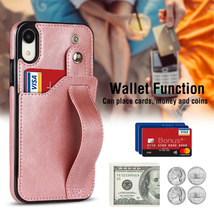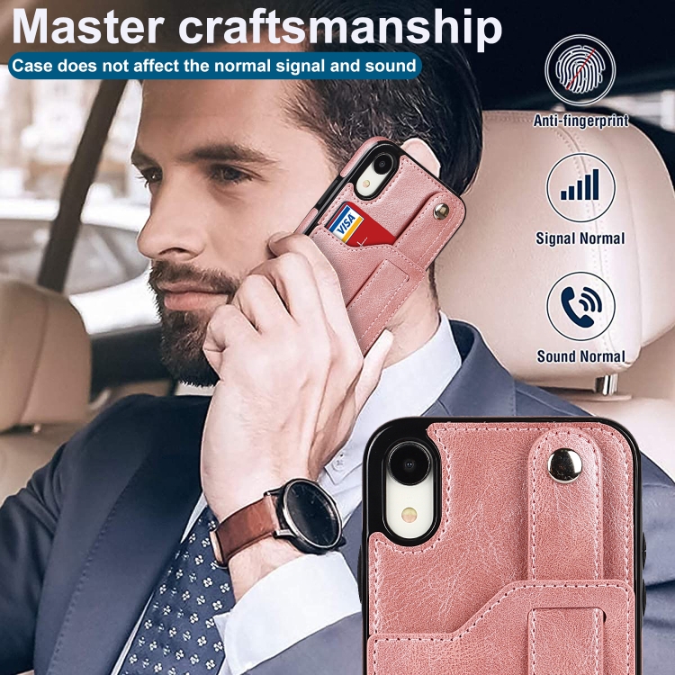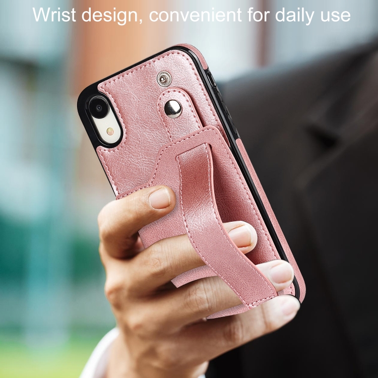 Funda para iPhone Xr Crazy Horse Texture Cuero TPU + PU Prueba de Golpes Ranura Tarjeta Correa (Oro Rosa)