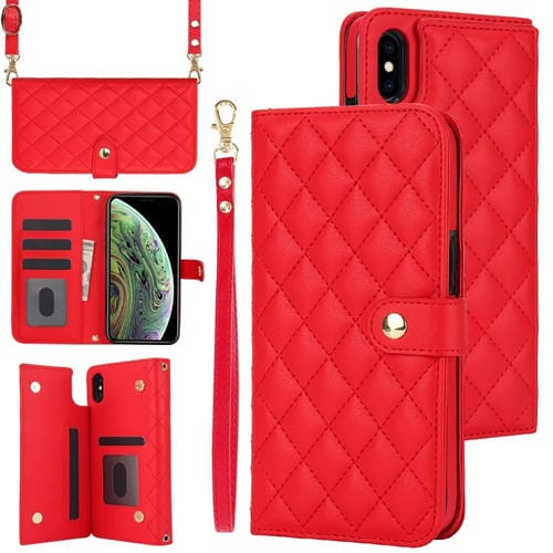 Estuche para Teléfono iPhone Xr Crossbody Cuero Rómbico Multifunción (Rojo)