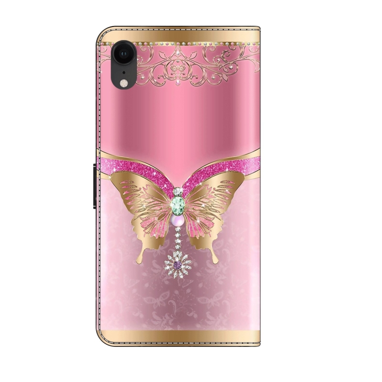 Pour iPhone XR Crystal 3D Étui de protection en cuir antichoc pour téléphone (papillon à fond rose)