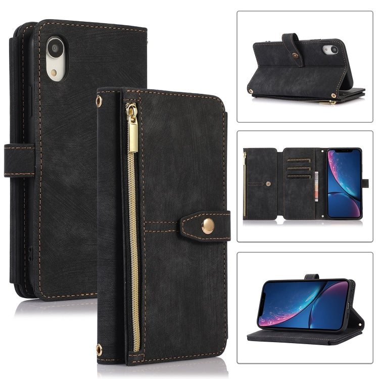 Funda de Cuero para Teléfono iPhone Xr Dream 9-Card Wallet Zipper Bag (Negro)