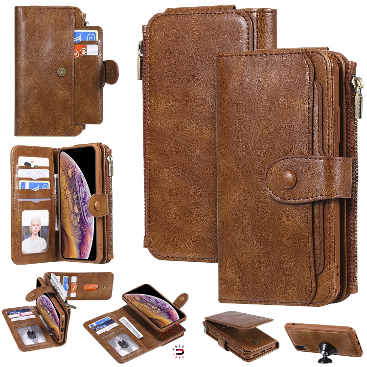 Pour iPhone XR Étui en cuir à rabat horizontal magnétique détachable rétro multifonctionnel rétro avec fentes pour cartes et support et portefeuille et cadre photo (marron)