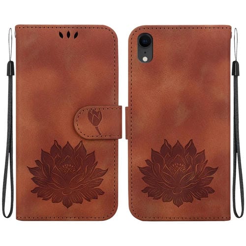 Funda para iPhone Xr Cuero con Relieve de Loto (Marrón)