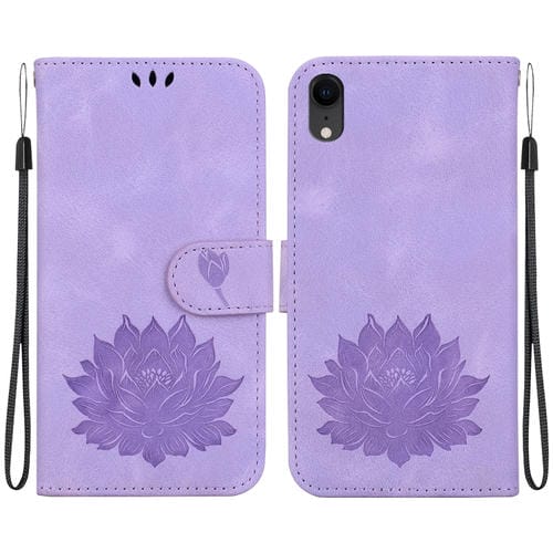 Funda de Cuero para iPhone Xr con Relieve de Loto (Púrpura)