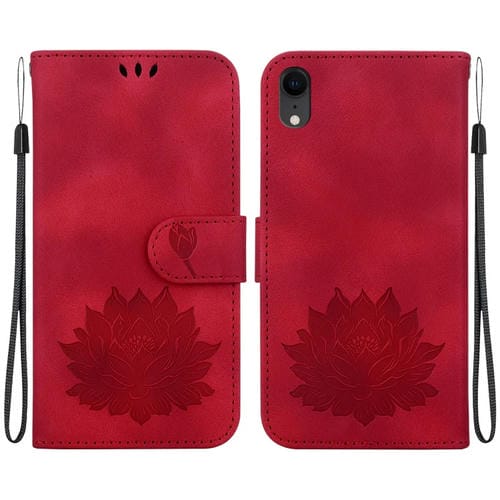 Funda para iPhone Xr Cuero con Relieve de Loto (Rojo)