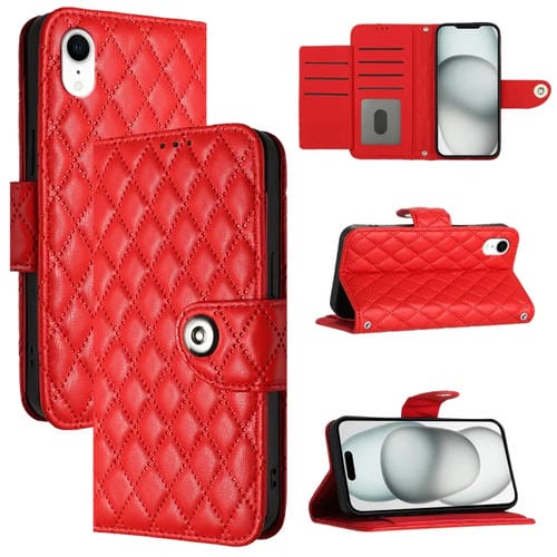 Funda para Teléfono iPhone Xr Cuero con Tapa Textura Rómbica y Cordón (Rojo)