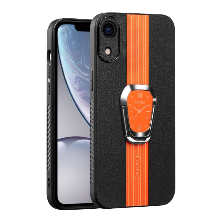 Funda Trasera de Cuero Litchi Magnética con Soporte para iPhone Xr (Naranja)