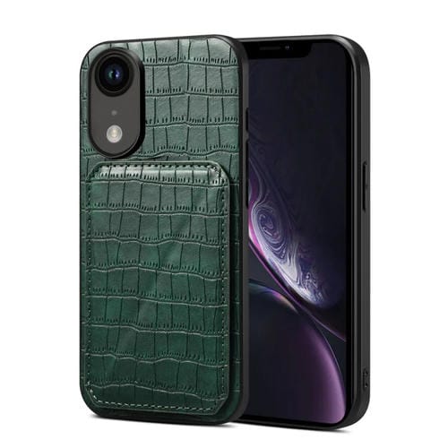 Funda Trasera para iPhone Xr de piel de cocodrilo de imitación con soporte (Verde)