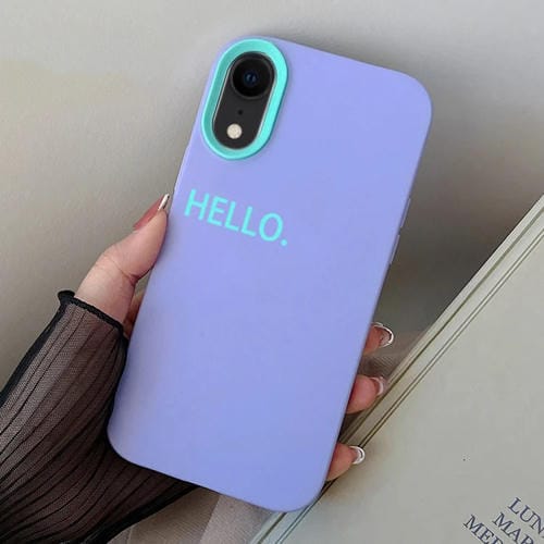 Estuche híbrido para iPhone Xr Hello Word PC y TPU (Púrpura)