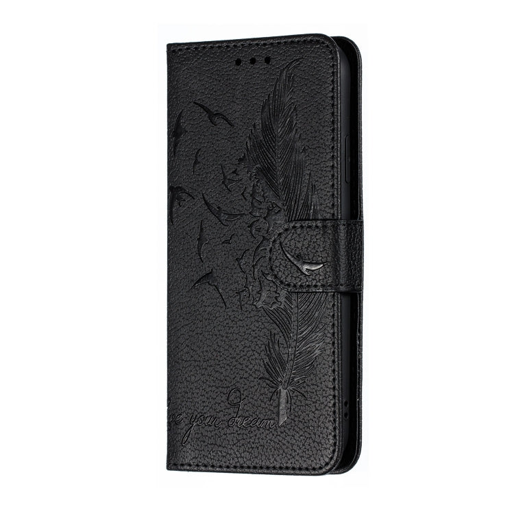 Funda de Cuero iPhone Xr Patrón de Plumas Litchi Textura con Tapa Horizontal Billetera Soporte Ranuras para Tarjetas (Negro)