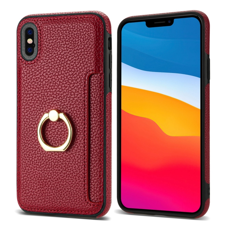 Funda Trasera para iPhone Xr Ring Card Litchi Cuero (Rojo)