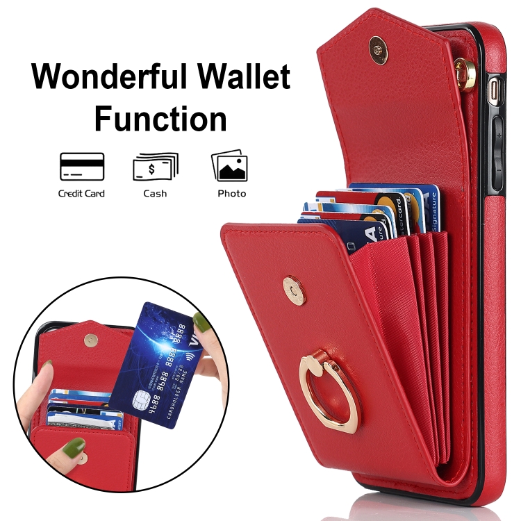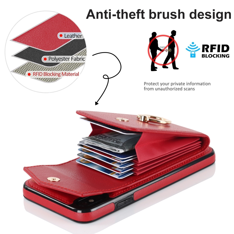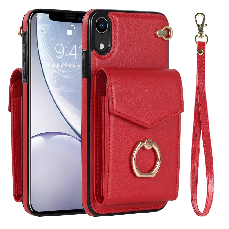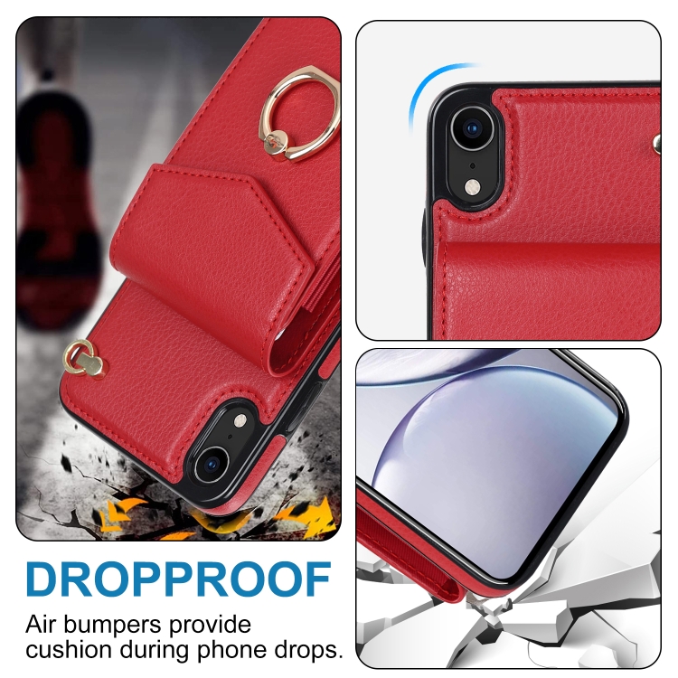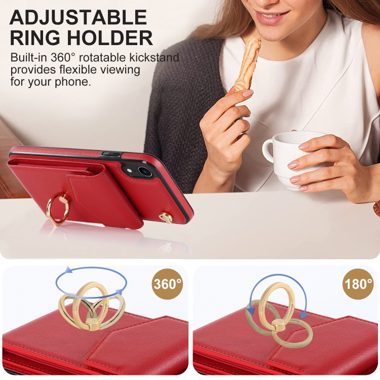 Funda para iPhone Xr Ring Holder Rfid Card Slot Phone Case (Rojo)