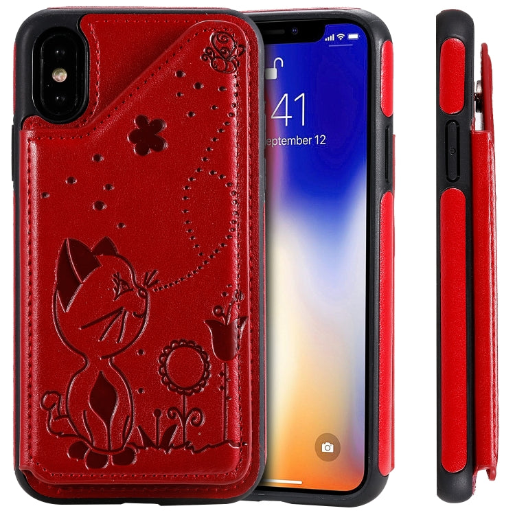 Estuche protector para iPhone Xs Cat Bee patrón en relieve a prueba de golpes con ranuras para tarjetas marco de fotos (Rojo)