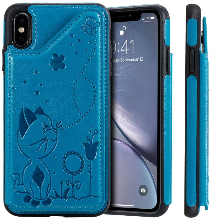 Estuche protector para iPhone Xs Max Cat Bee relieve patrón a prueba de golpes con ranuras para tarjetas y marco de fotos (Azul)