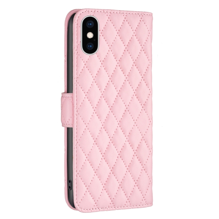 Funda para iPhone Xs Max Diamond Lattice Wallet de Cuero con Tapa (Rosa)