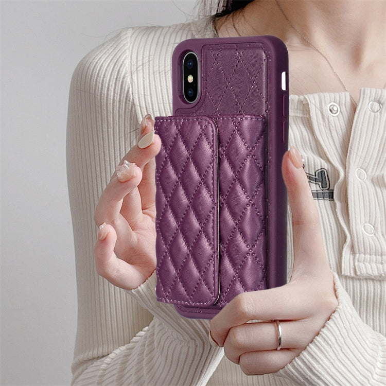 Estuche de teléfono iPhone Xs Max Cuero Rómbico con Billetera Horizontal (Púrpura Oscuro)