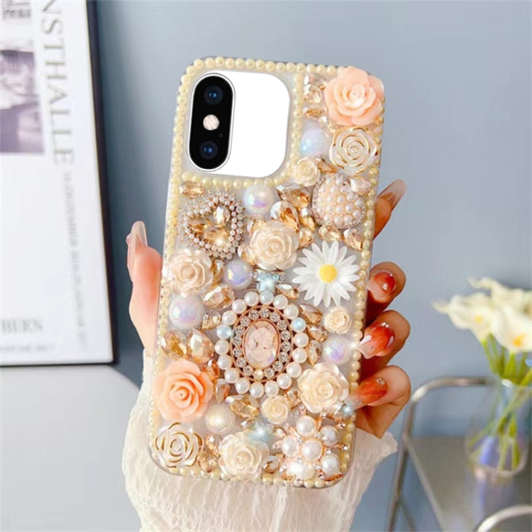 Estuche para teléfono iPhone Xs Max con incrustaciones de diamantes y rosas para PC (Amarillo)