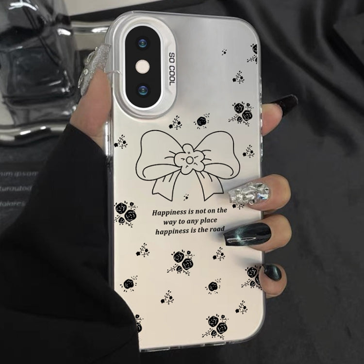 Funda híbrida para iPhone Xs Max TPU para PC con pintura plateada (Lazo Floral Blanco)