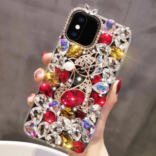 Funda para Teléfono Fox para iPhone Xs Max Hecha a Mano con Diamantes y Piedras Preciosas (Rojo)