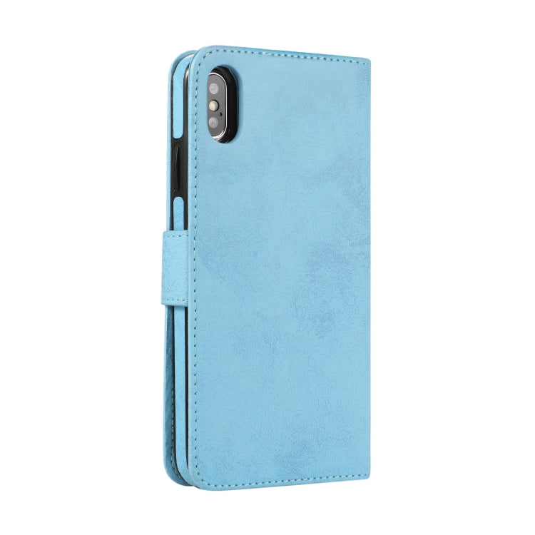 Funda para iPhone Xs Max Klt888-2 Retro 2 en 1 Cuero TPU + PU con Tapa Horizontal Magnética Desmontable Soporte Ranuras Tarjetas Marco Fotos Billetera (Azul Cielo)