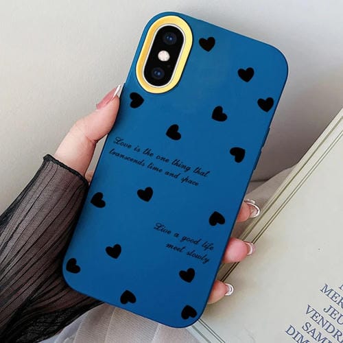 Funda híbrida para iPhone Xs Max Love Hearts PC y TPU (Azul Real)