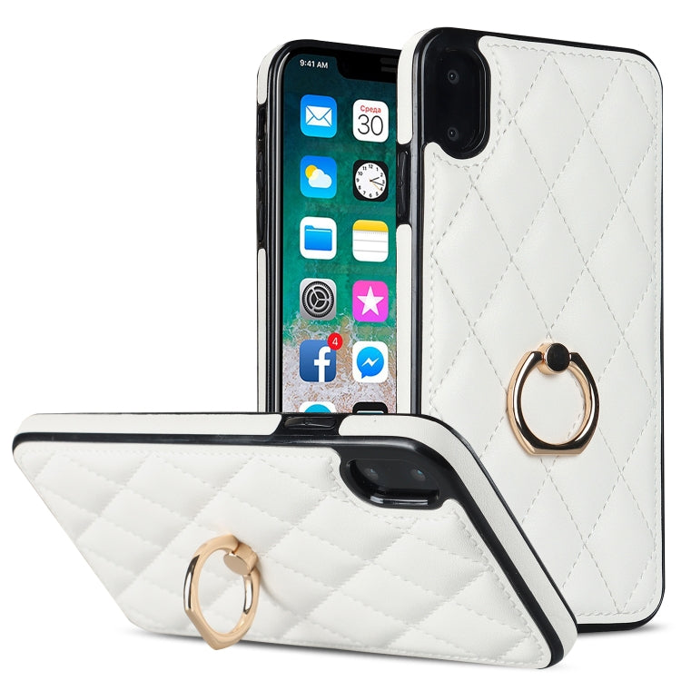Funda para iPhone Xs Max Rhombic PU Cuero con Soporte para Anillo (Blanco)