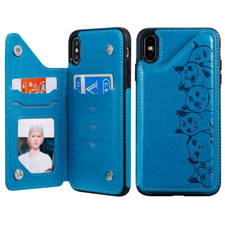 Estuche Protector Six Cats para iPhone Xs Max con Patrón de Relieve, Soporte, Ranuras para Tarjetas y Marco de Fotos (Azul)
