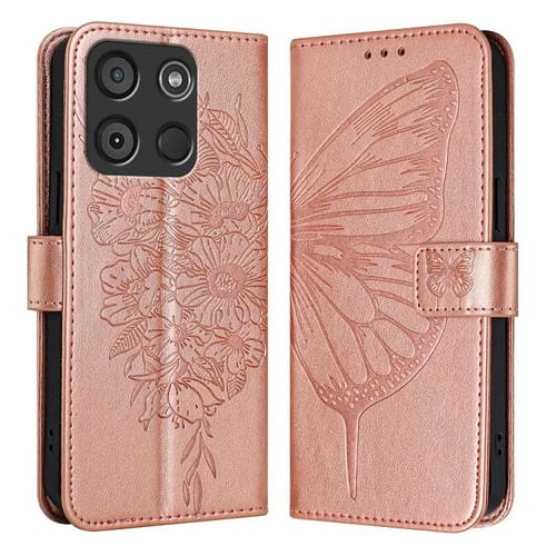 Funda para Teléfono Itel A60 / A60S Cuero con Mariposa en Relieve (Oro Rosa)