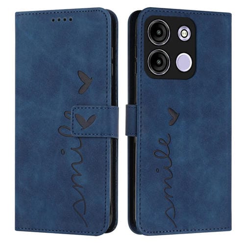 Funda para Teléfono Itel A60S Skin Feel Heart Cuero En Relieve con Cordón Largo (Azul)