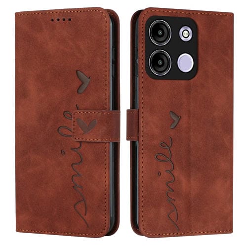 Funda para Teléfono Itel A60S Skin Feel Heart Cuero En Relieve con Cordón Largo (Marrón)