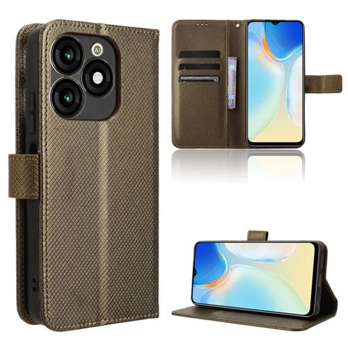 Funda de Cuero para Itel A70 A665L con Textura de Diamante (Marrón)