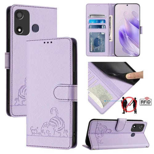 Estuche para Teléfono Itel P17 / A27 Cuero Rfid con Patrón en Relieve y Cordón (Púrpura)