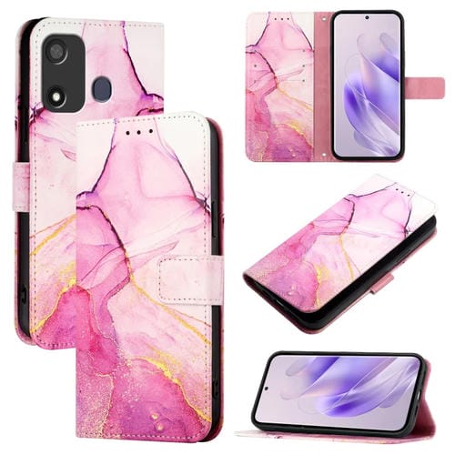 Funda para Itel P17 / A27 Pt003 de Cuero con Tapa y Patrón Mármol (Rosa, Morado y Dorado)