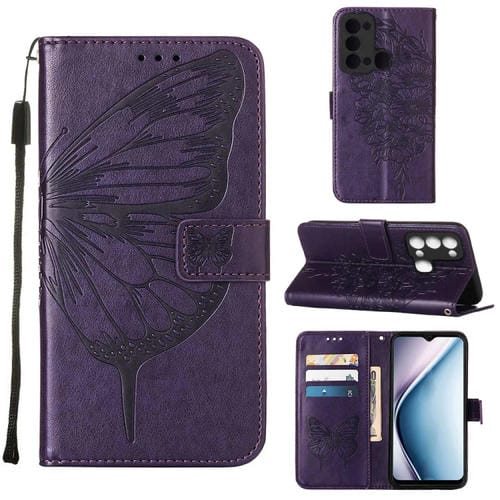 Estuche para Teléfono Itel P38/S17/S1661W/Vision 3 Cuero con Tapa Mariposa (Púrpura Oscuro)