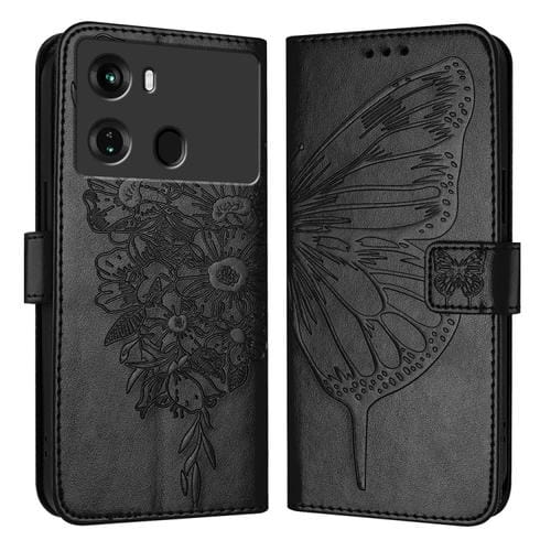 Funda de Cuero para Itel P40 con Mariposa en Relieve (Negro)