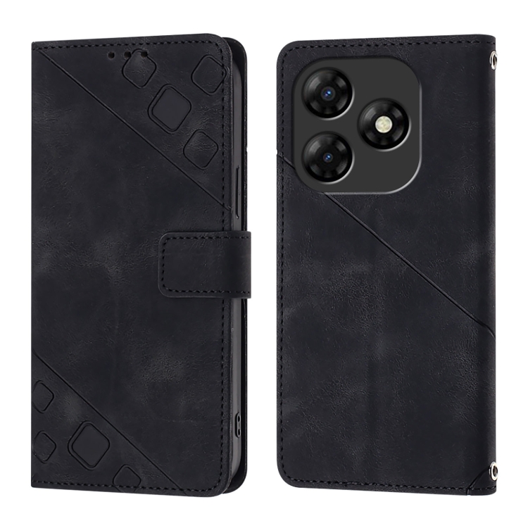 Funda de Cuero para Itel P55 4G Skin Feel con Relieve (Negro)