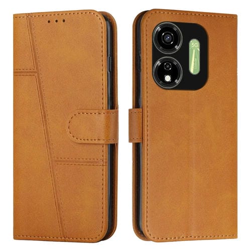 Funda para Itel P55 5G de Cuero con Hebilla y Textura de Becerro con Costura (Amarillo)