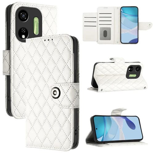 Pour itel P55 5G Étui de téléphone en cuir à rabat à texture diamant avec lanière (blanc)