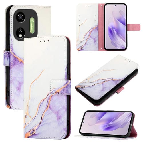 Funda para Itel P55 5G Pt003 de Cuero con Tapa y Patrón de Mármol (Blanco y Morado)
