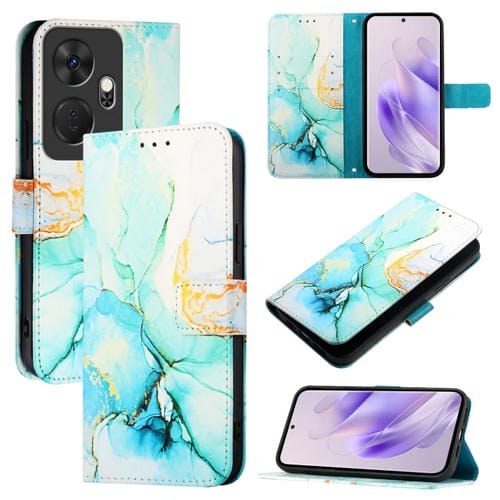 Funda de Cuero con Tapa para Itel P55 + Pt003 con Patrón de Mármol (Verde)