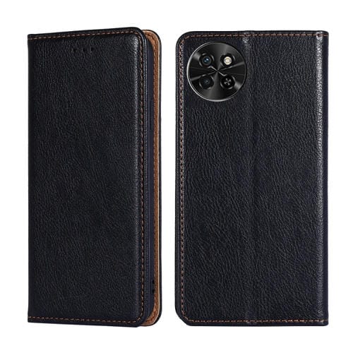 Estuche para Teléfono Itel S23 4G Cuero Magnético Color Sólido con Aceite Brillante (Negro)