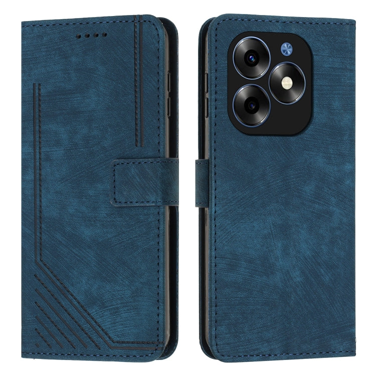 Estuche para Itel S23 de Cuero con Patrón de Rayas Skin Feel y Cordón (Azul)