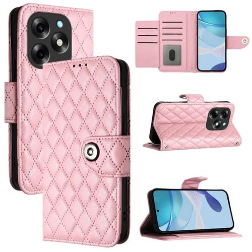 Pour itel S23 + Étui de téléphone à rabat en cuir à texture rhombique avec lanière (rose)