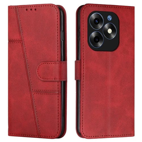 Funda para Itel S23 de Cuero con Hebilla y Textura de Becerro con Costura (Rojo)