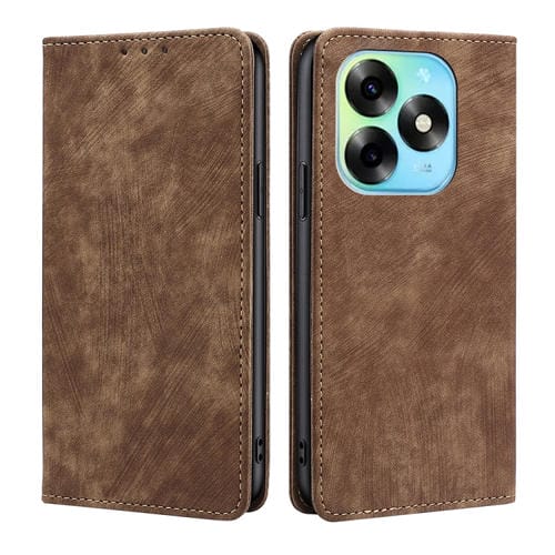 Funda de Cuero Magnética para Itel S23 Plus 4G con Rfid y Cepillo Antirrobo (Marrón)