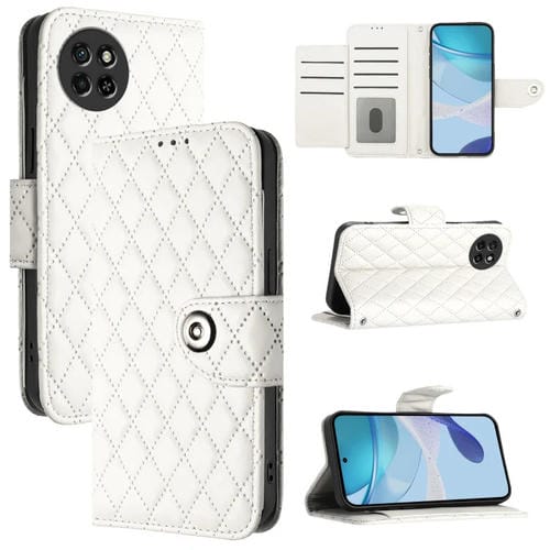 Pour Itel S23 S665L Étui de téléphone en cuir à texture rhombique avec lanière (blanc)