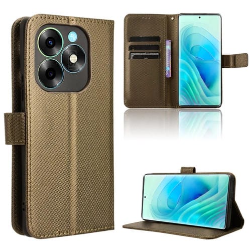Funda de Cuero para Itel S23 + S681Ln con Textura de Diamante (Marrón)