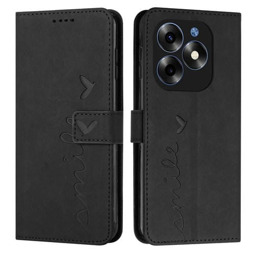 Funda de Cuero para Itel S23 con Relieve Skin Feel y Cordón Largo (Negro)