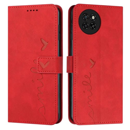 Funda de Cuero Itel S23 Skin Feel Heart con Relieve y Cordón Largo (Rojo)